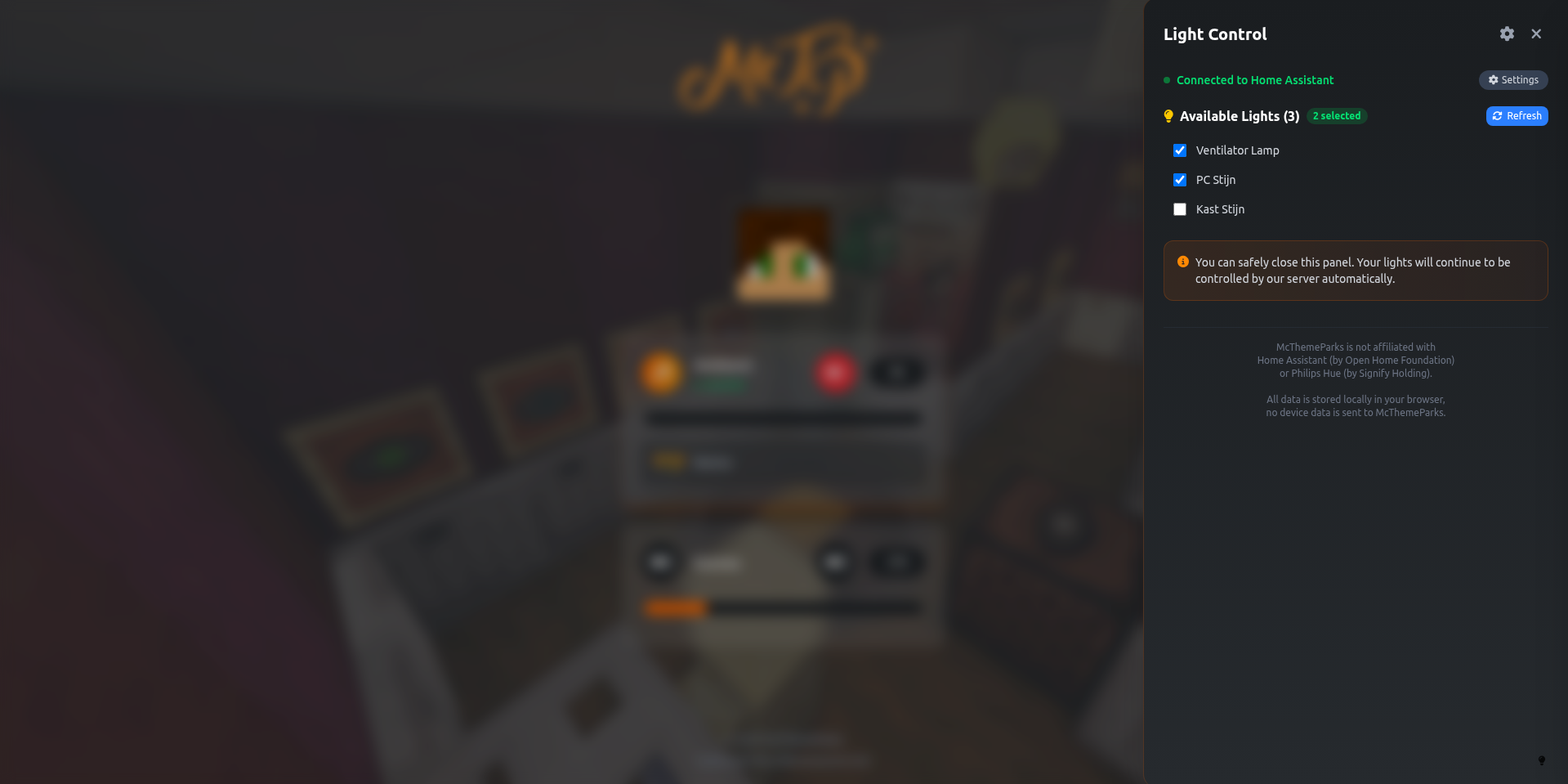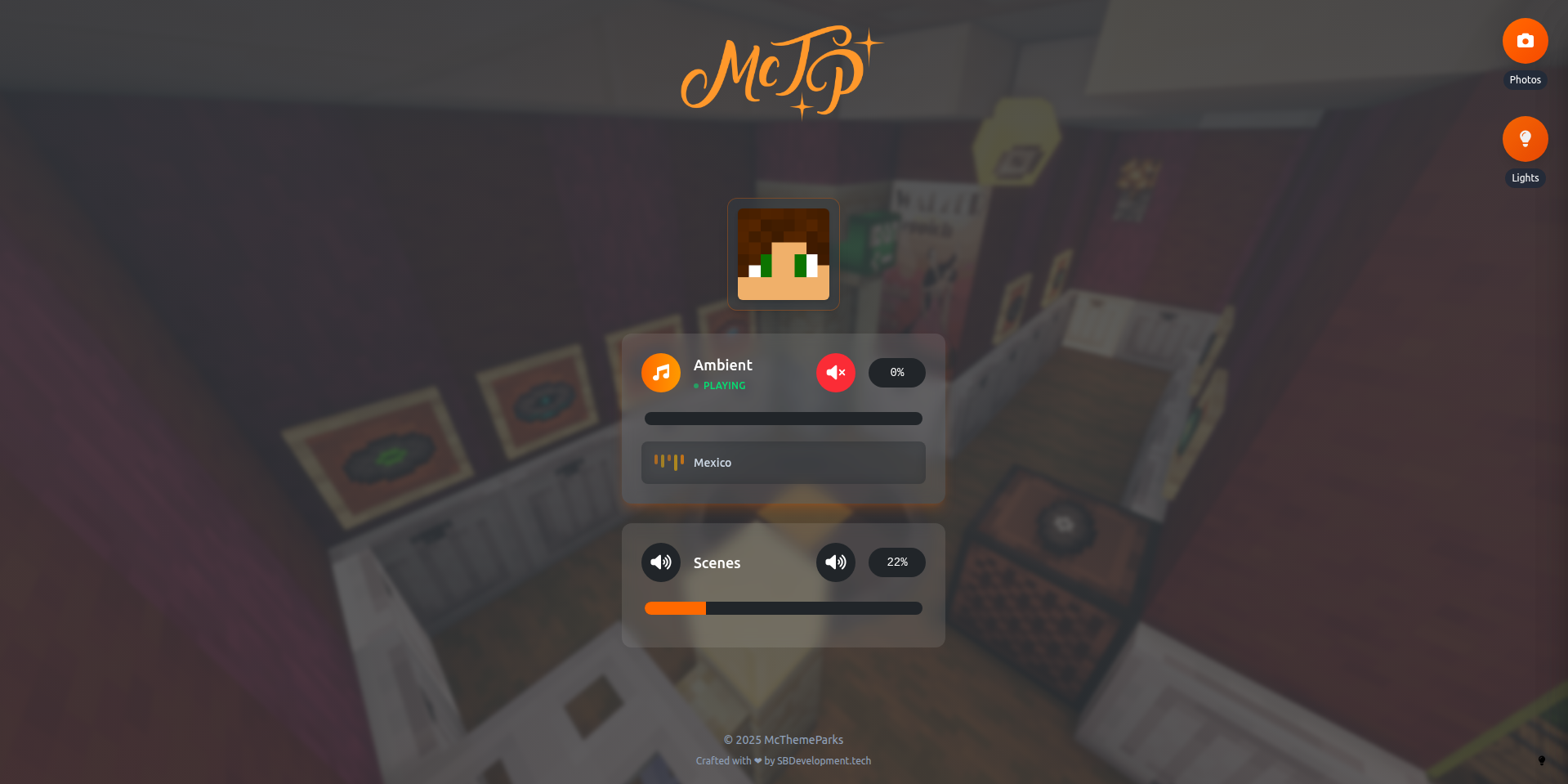 I developed an audio client for McThemeParks. It can play the music from the Minecraft server in a player's browser. It also supports Home Assistant and Philips Hue™ for controlling the lights in your room.